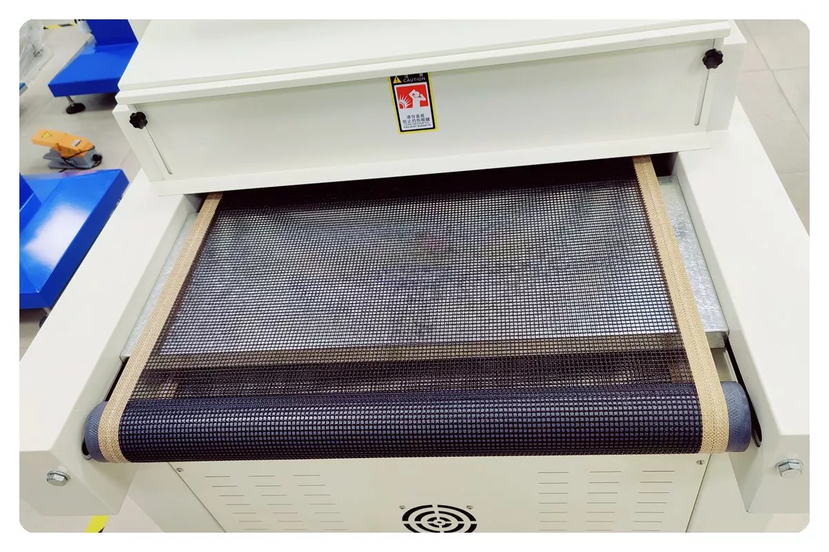 Tá crios iompair Meaisín Curing UV Conveyor Leithead 1000mm á rialú ag mótar leictreach, agus is féidir a luas a choigeartú bunaithe ar an luas táirgthe riachtanach chun éilimh thriomú éagsúla a mheaitseáil.