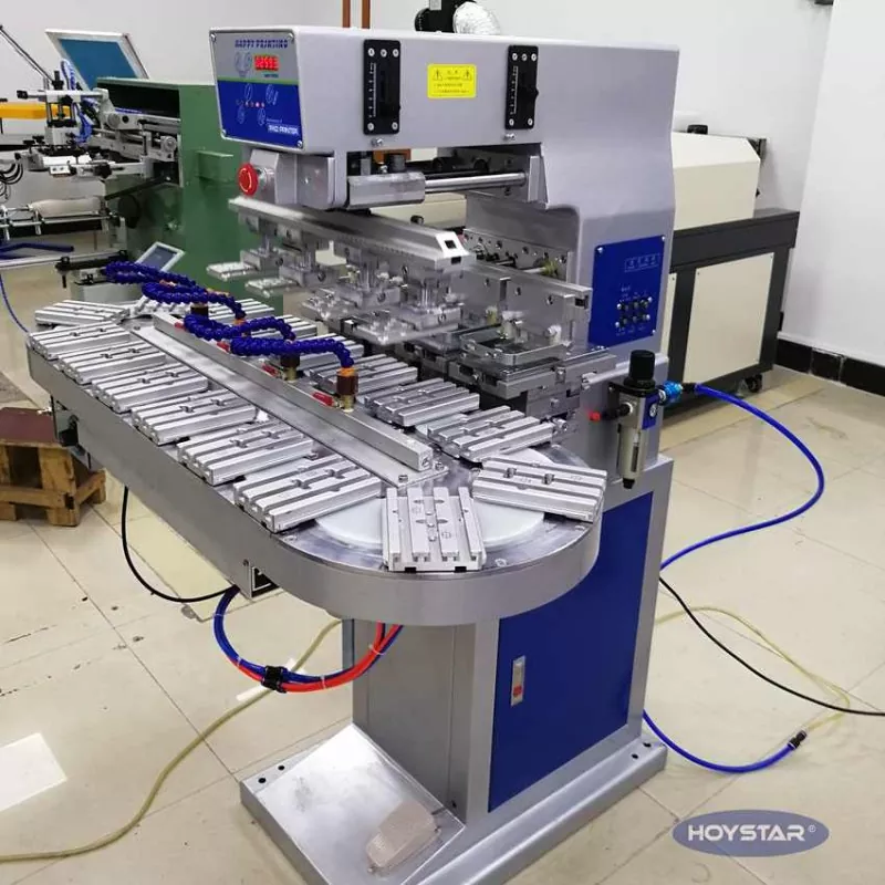 Mar an monaróir gairmiúil sa tSín, ba mhaith linn printéir ard-éifeachtúlachta HOYSTAR Big Size Four Color Pad With Conveyor a sholáthar duit. Cuireann an meaisín seo ar chumas priontáil eochaircheap ceithre dhath leanúnach le haghaidh táirgí, is féidir clárú dath a dhéanamh i dtimthriall amháin. Glacann an meaisín seo córas iompair caschláir rothlacha, a chuireann ar chumas aistriú táirge leanúnach agus rianúil ar feadh an phróisis priontála, cumas róphriontáil iomlán 4 dhath a chríochnú i dtimthriall rothlach amháin. I gcomparáid le clódóirí ceap tointeála, tá a luas an-tapa.