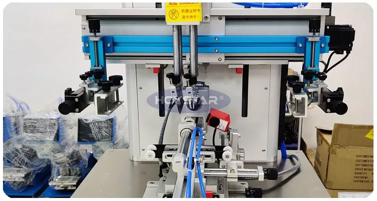 Mar an monaróir gairmiúil sa tSín, ba mhaith linn Meaisín Priontála Scáileáin Sorcóireach Corn Buidéal HOYSTAR CNC ard-éifeachtúlachta a sholáthar duit , dearadh printéir scáileáin le haghaidh táirgí priontála le dromchlaí cruinne. Is printéir scáileáin cuartha meánmhéide é an meaisín seo, atá oiriúnach le priontáil ar tháirgí éagsúla cosúil le cupáin, buidéil, feadáin phlaisteacha, próca etc. Tagann sé le córas clárúcháin dath, rud a ligeann do chlárú dath éasca agus ard-chruinne. Priontálann sé go tapa le caighdeán seasta agus torann níos ísle.