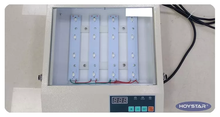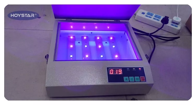 An Meaisín Nochtadh Fholúis UV Le Triomú Le haghaidh Priontáil Scáileáin atá feistithe le painéal oibríochta, is féidir an t-am nochta a choigeartú go saor de réir riachtanas