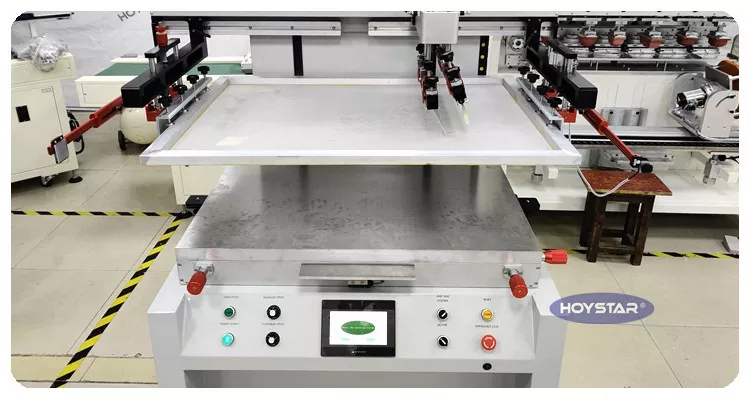 Mar an monaróir agus an soláthróir gairmiúil, tá HOYSTAR Semi Uathoibríoch Meaisín Priontála Scáileán Flatbed deartha le haghaidh priontála ar earraí cothrom éagsúla, Feistithe le tábla oibre trí shúchán i bhfolús cosc ​​go héifeachtach ar dhíláithriú na n-ábhar priontála árasán Cibé an priontáil le páipéar nó scannán plaisteach, ráthaíonn an fheidhm seo go gcomhlíonann gach táirge priontála riachtanais ardcháilíochta an chustaiméara.
