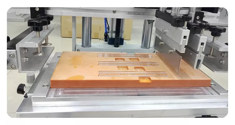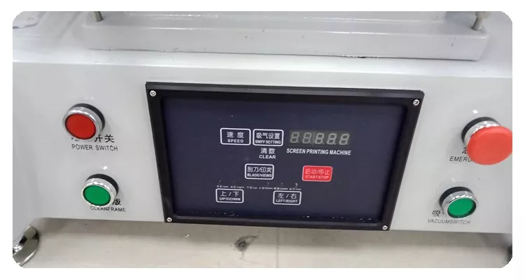Stáisiún oibre priontála, is féidir leis an bhfráma scáileáin a athsholáthar chun patter nó lógó difriúil a phriontáil ar an táirge