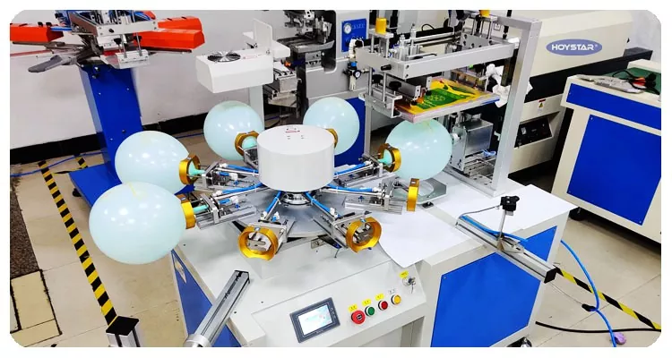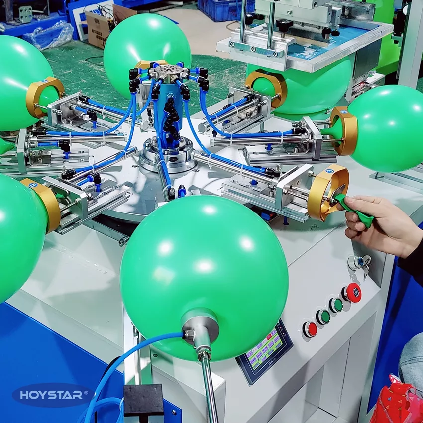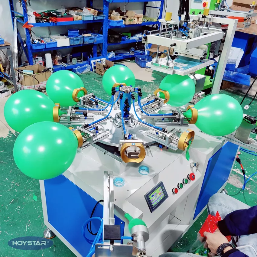 Is monaróir agus soláthraí iontaofa é HOYSTAR sa tSín; Tá an Meaisín Priontála Scáileáin Balún LaTeX Aon-dath seo HOYSTAR deartha le priontáil ar balúin laitéis. Feistithe le tábla oibre rothlacha, séideadh uathoibríoch, rothlú uathoibríoch, triomú uathoibríoch, feidhmeanna díluchtaithe uathoibríoch. Rialú scáileán tadhaill PLC, comhéadan atá éasca le húsáid le haghaidh oibriú sábháilte, iomasach. Comhcheanglaíonn an meaisín luas, cruinneas agus éascaíocht úsáide.