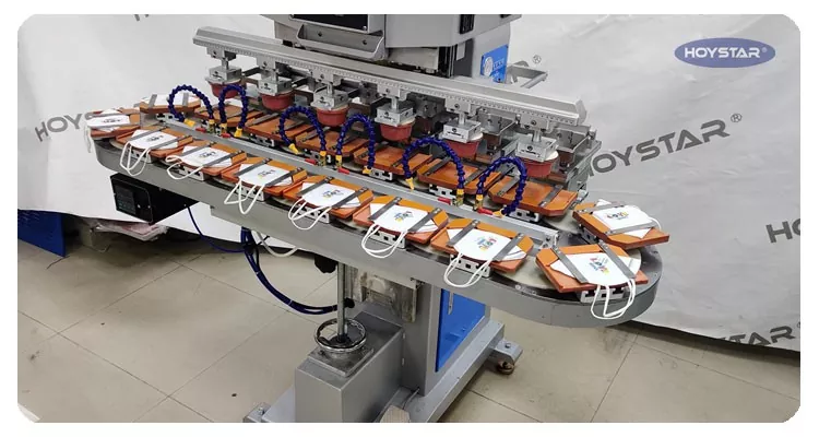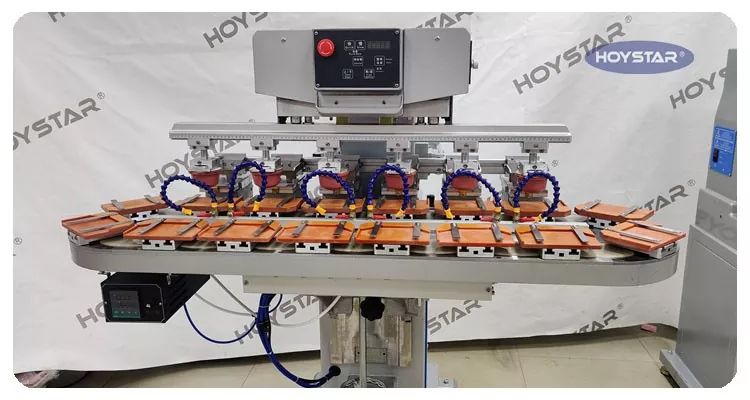 Mar an monaróir gairmiúil sa tSín, ba mhaith linn printéir ard-éifeachtúlachta HOYSTAR Six Colour Pad With Conveyor Worktable a sholáthar duit. Cumasaíonn an meaisín seo priontáil eochaircheap sé dhath leanúnach le haghaidh táirgí, le clárú dath amháin críochnaithe i dtimthriall amháin. Glacann an meaisín seo córas iompair caschláir rothlach, a chuireann ar chumas aistriú táirge leanúnach agus rianúil ar fud an phróisis priontála, cumas róphriontáil iomlán 6-dath a chríochnú i dtimthriall rothlach amháin. I gcomparáid le clódóirí ceap tointeála, tá a luas an-tapa.